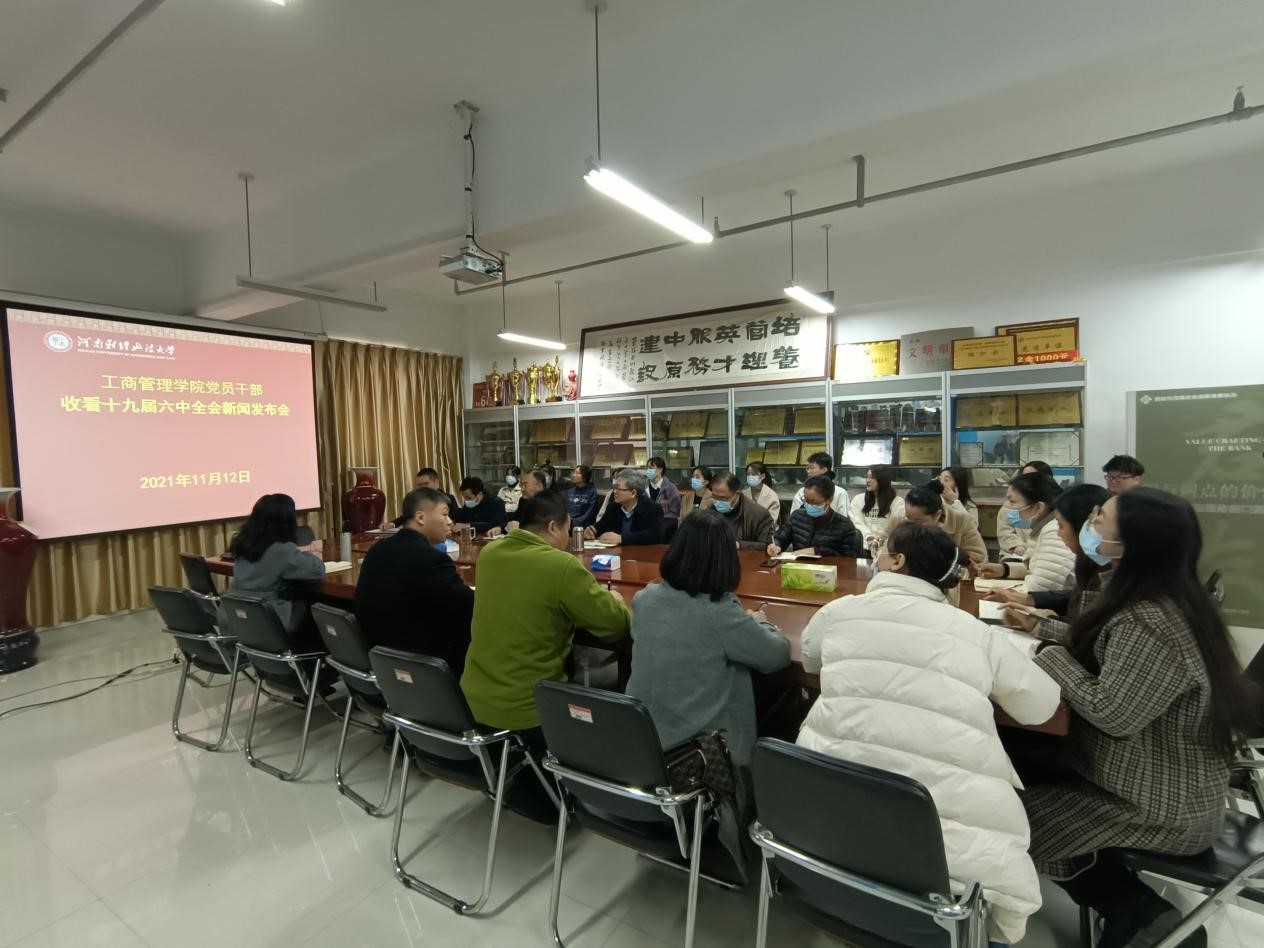 11月12日上午10点,伟德国际1946bv官网组织党员干部准时收看十九届六中全会新闻发布会直播,认真聆听学习党的十九届六中全会精神,党委书记王永伟、院长牛全保以及全体学院领导、师生党员代表参加学习观看直播。