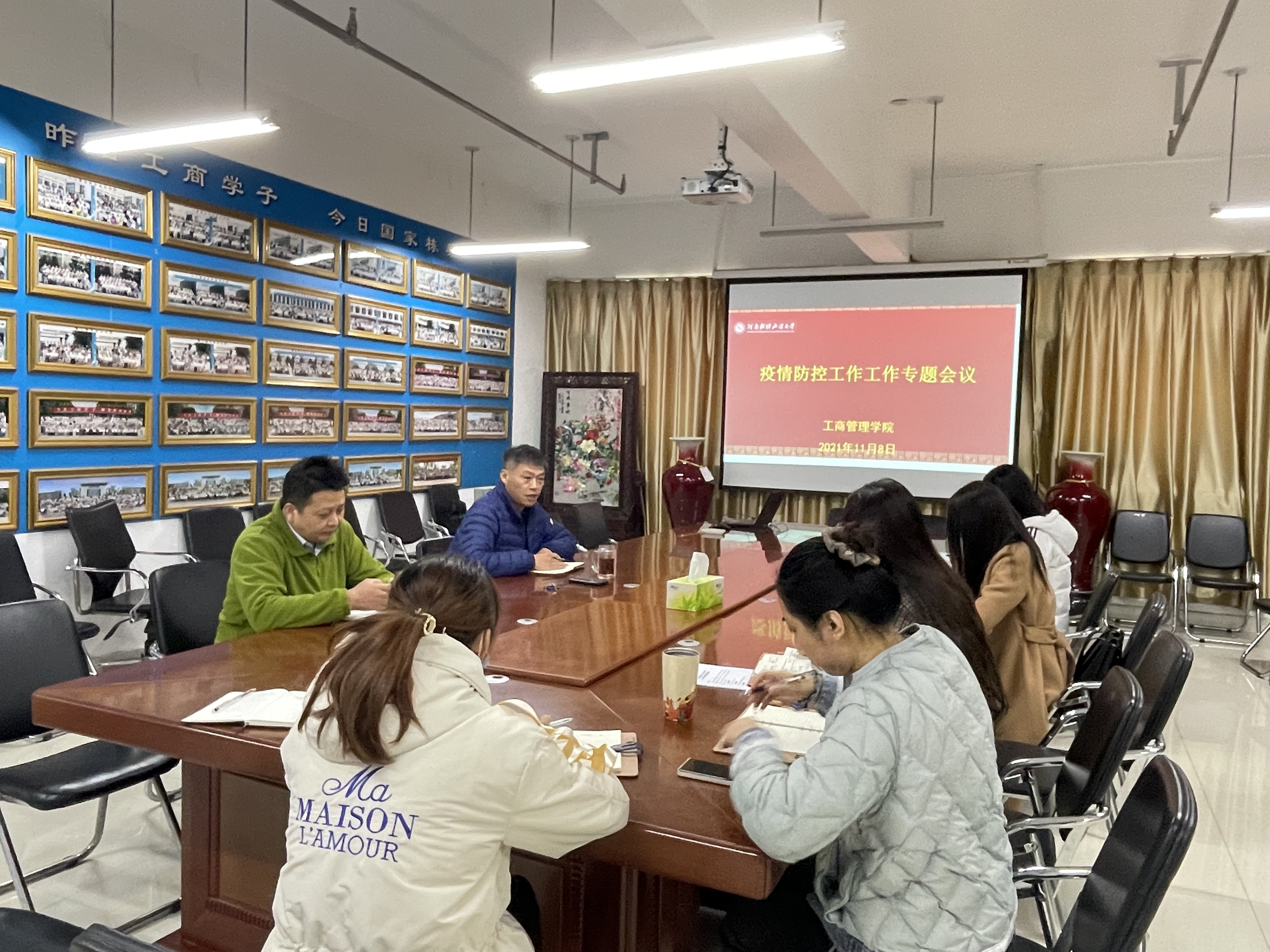 11月8日,伟德国际1946bv官网在教科楼B771会议室召开疫情防控工作专题会议,传达上级最新指示,研究部署当前疫情防控工作。党委书记王永伟,党委副书记赵绍春及全体专职兼职辅导员参加会议,赵绍春主持会议。
