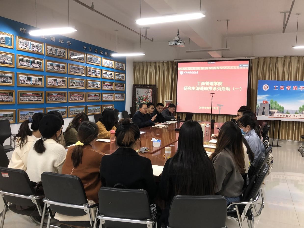 为了更好地开展“我为群众办实事”实践活动,2021年10月17日下午18:30,伟德国际1946bv官网在教科楼B座771成功举办“研究生深造助推系列活动(一)”。蔡树堂副院长出席会议,会议特邀四川大学在读博士研究生马小娜、对外经济贸易大学在读博士研究生余彩婷做考博经验分享交流,全体研究生参加会议,郭萌萌老师主持会议。