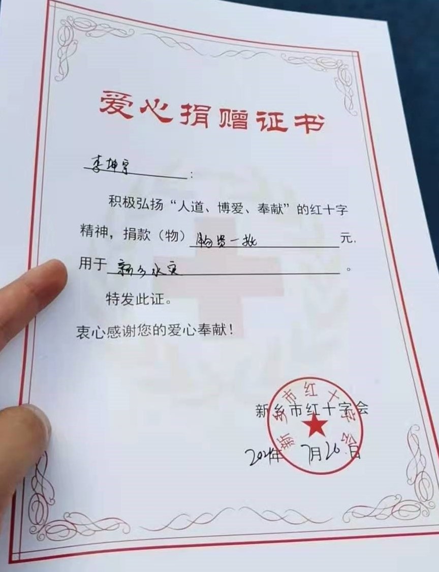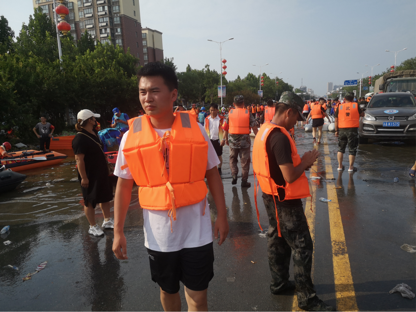 七月二十五日,新乡卫辉市爆发洪涝灾害,郑州市民闻讯自发组织救援队前去援助,我们学生会主席李坤宇积极参与,捐款800元,与救援队购买物资后,组成八辆汽车的车队,驰往卫辉市。七月二十六号路过新乡牧野区的时候,遇到涨水,发现路边工厂被淹,正在展开救援,李坤宇一行人下车之后立刻投入救援行动,他们划船进入工厂,历经两个小时救出被困员工7人。后将物资送到新乡物资中转站。目前,李坤宇与救援队一起,又奔赴灾区运送救援设备。