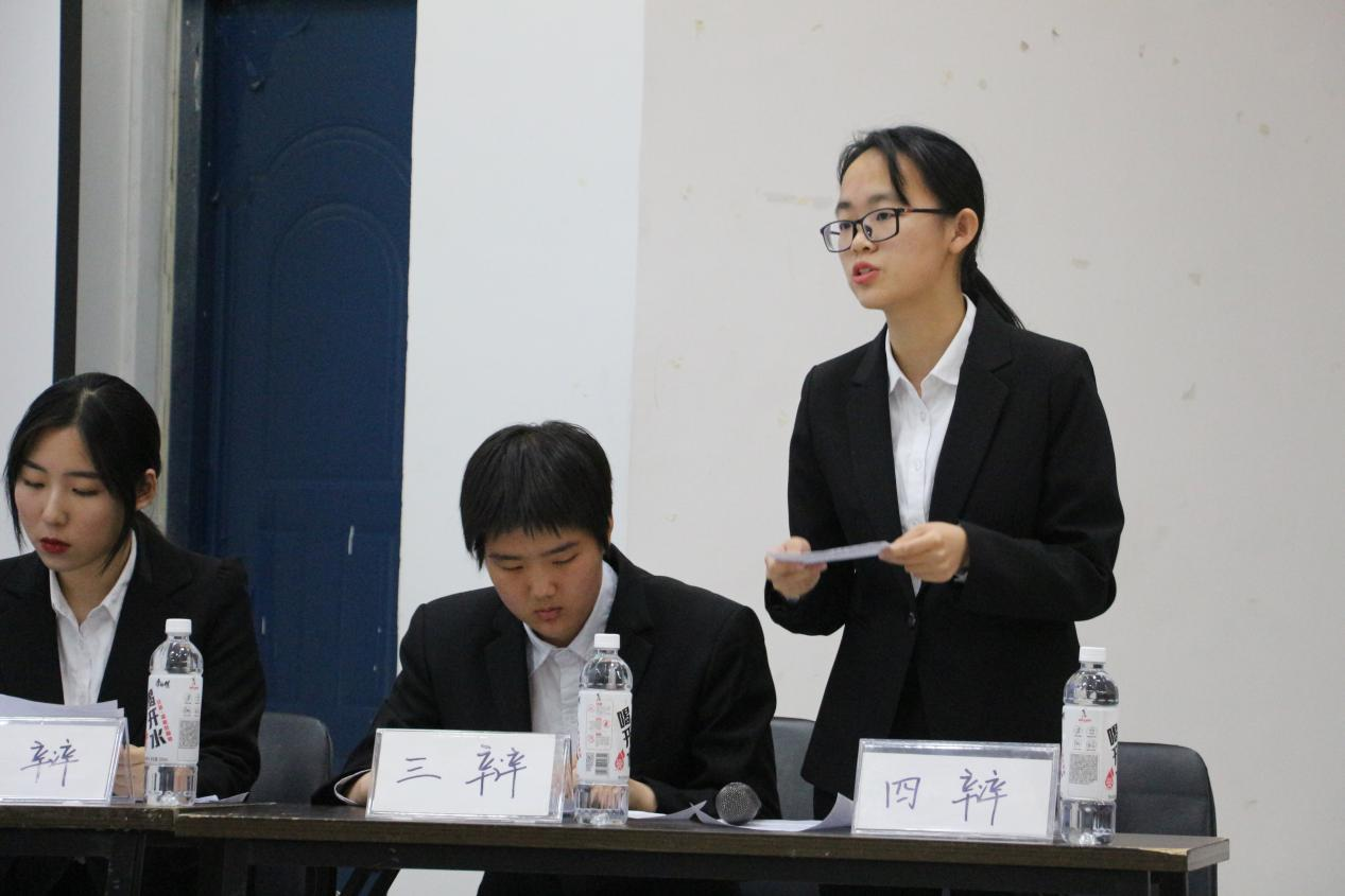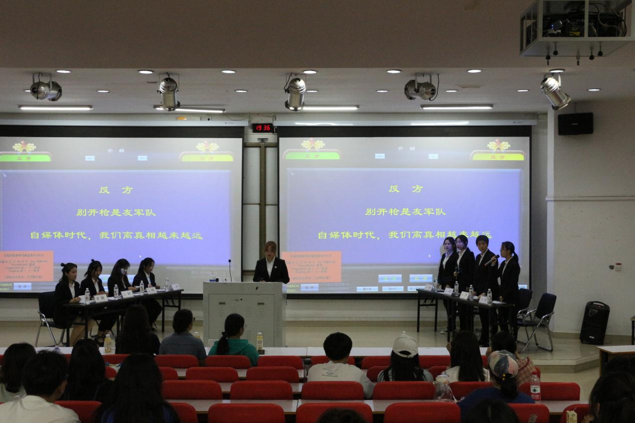 27日晚,伟德国际1946bv官网“新生杯”辩论赛决赛在教二-220教室举行。工程管理与房地产学院、外语学院、伟德国际1946bv官网的辩论队队长担任此次比赛的评委,90余名学生到场观赛。