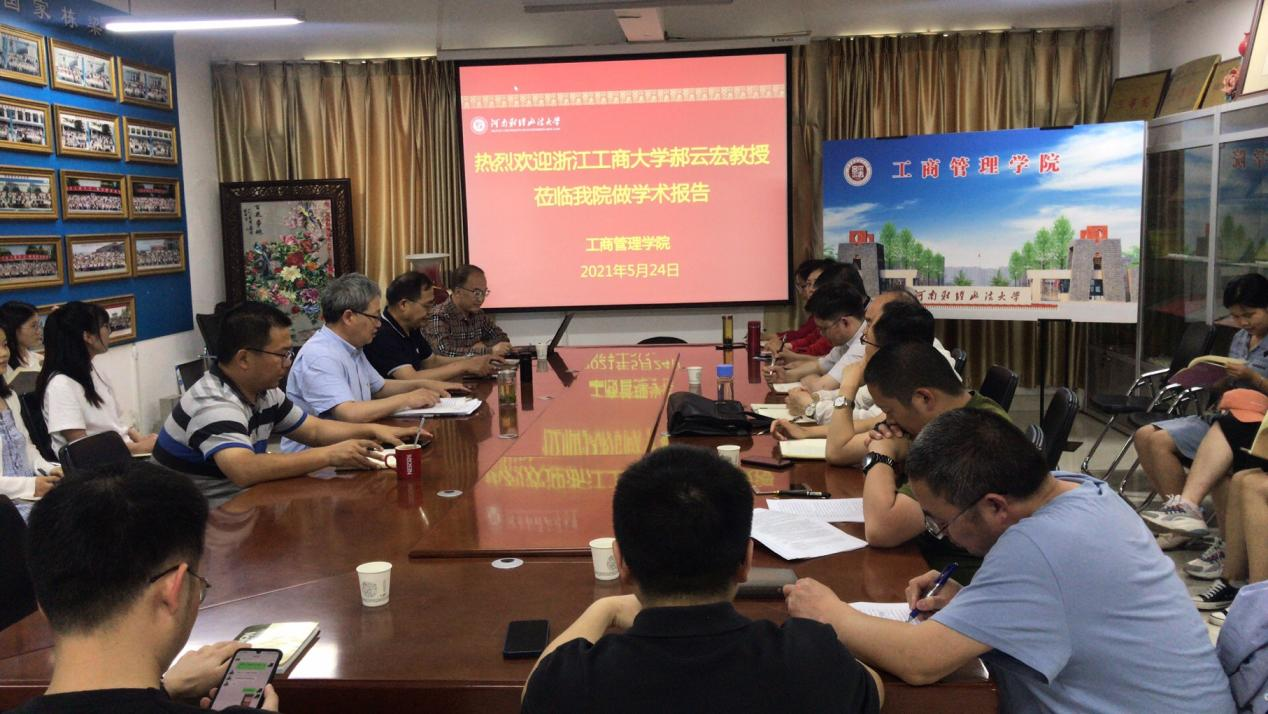 2021年5月24日下午,浙江工商大学郝云宏教授应邀莅临伟德国际1946bv官网,在教科楼B座771会议室为我们及其他学院师生做“企业组织形态演化与公司治理变革”学术报告。伟德国际1946bv官网院长牛全保、副院长蔡树堂及教师学生50多人参加报告会。