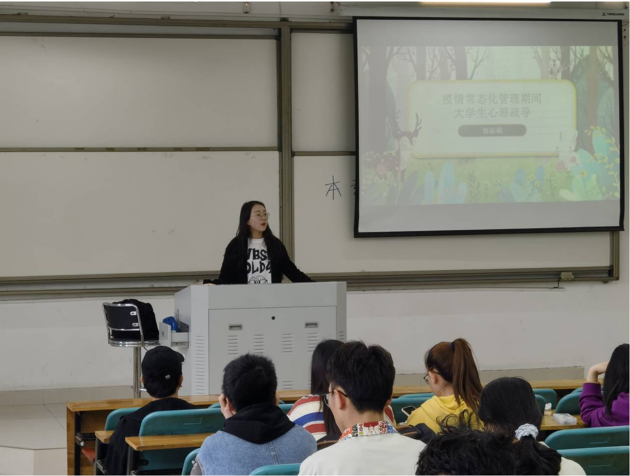 4月25日下午,伟德国际1946bv官网于教学科研楼B-112室举办了以“疫情防控常态化 我们从心出发”为主题的心理健康讲座,由辅导员郭萌萌主讲。19级、20级各班班长、团支书及宿舍长120余人到场聆听。