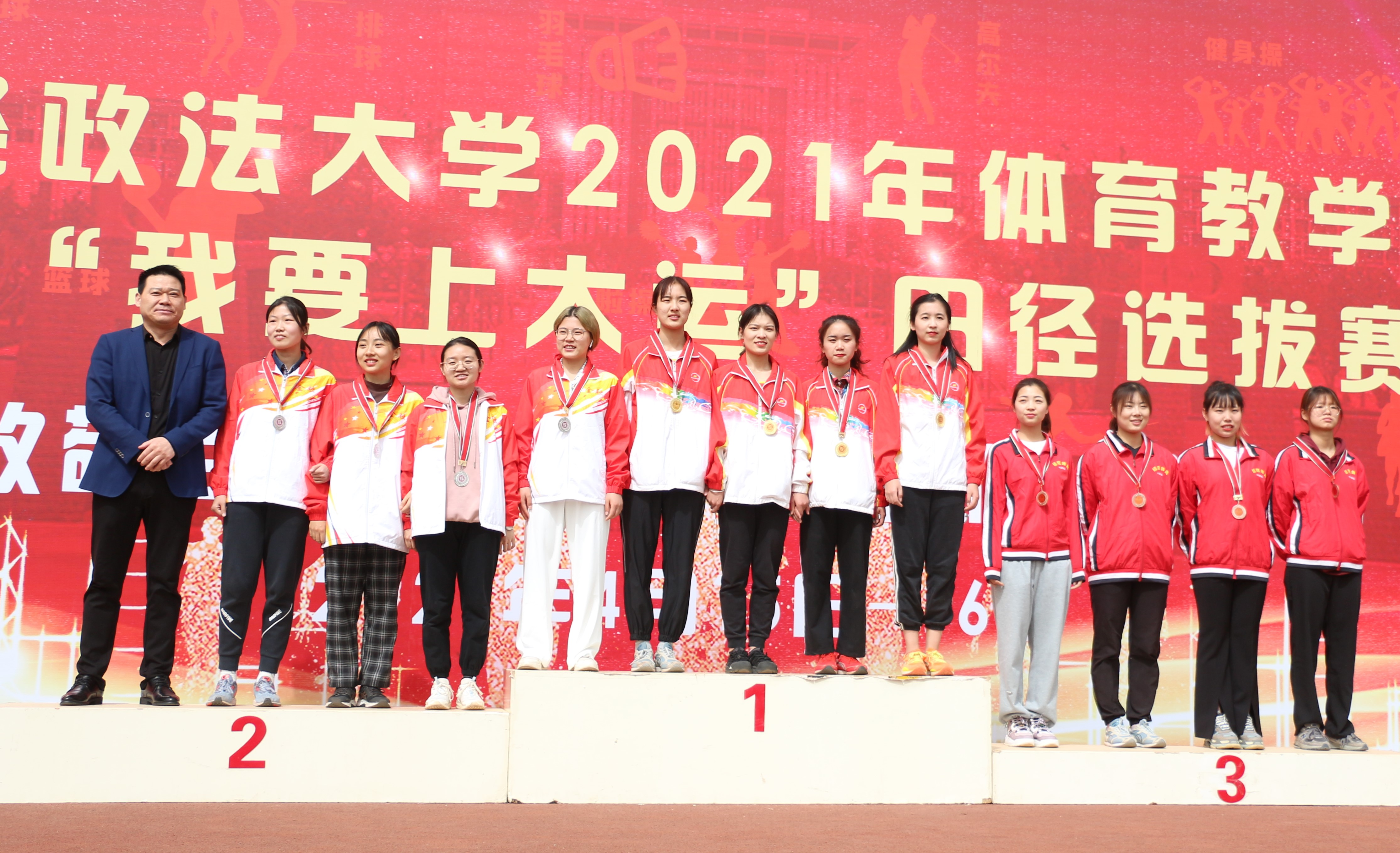 4月10日—11日、15—16日,“伟德国际1946官方网2021年体育教学交流赛暨‘我要上大运’田径选拔赛”(第11届校运会)分阶段在郑东校区东、西体育场举行。我们学生参加了表演类项目、集体项目以及田径等所有项目的竞赛,参赛学生达300余人。在运动会备战和比赛期间,同学们秉承德智体美劳全面发展理念,发扬集体主义精神,齐心协力,坚持训练,奋勇拼搏,最终以483.7分总分第一的成绩第九次夺得校运会冠军,同时获得田径女子团队总分第一名和男子团队总分第二名,彰显了伟德国际1946bv官网学生团结进取、昂扬向上的精神风貌。
