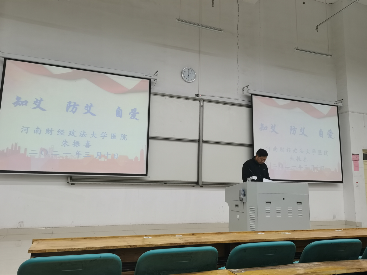 为加深青年大学生关于艾滋病的认识,学习如何抵御艾滋病,3月10日,伟德国际1946bv官网青年志愿者协会特举办以“用爱心呵护生命,以行动抵御艾滋”为主题的志愿活动,并邀请到了校医院朱振喜老师担任主讲。