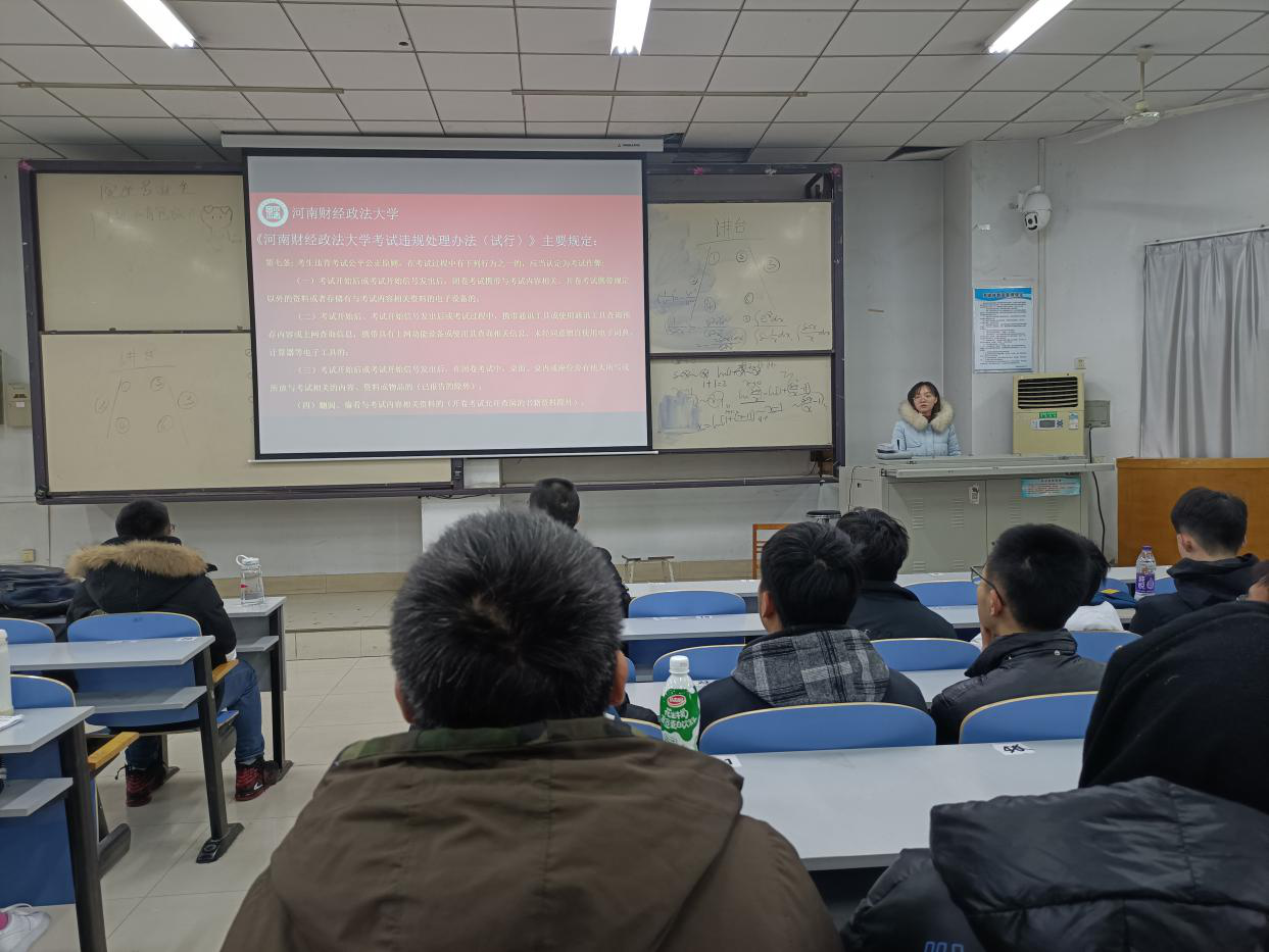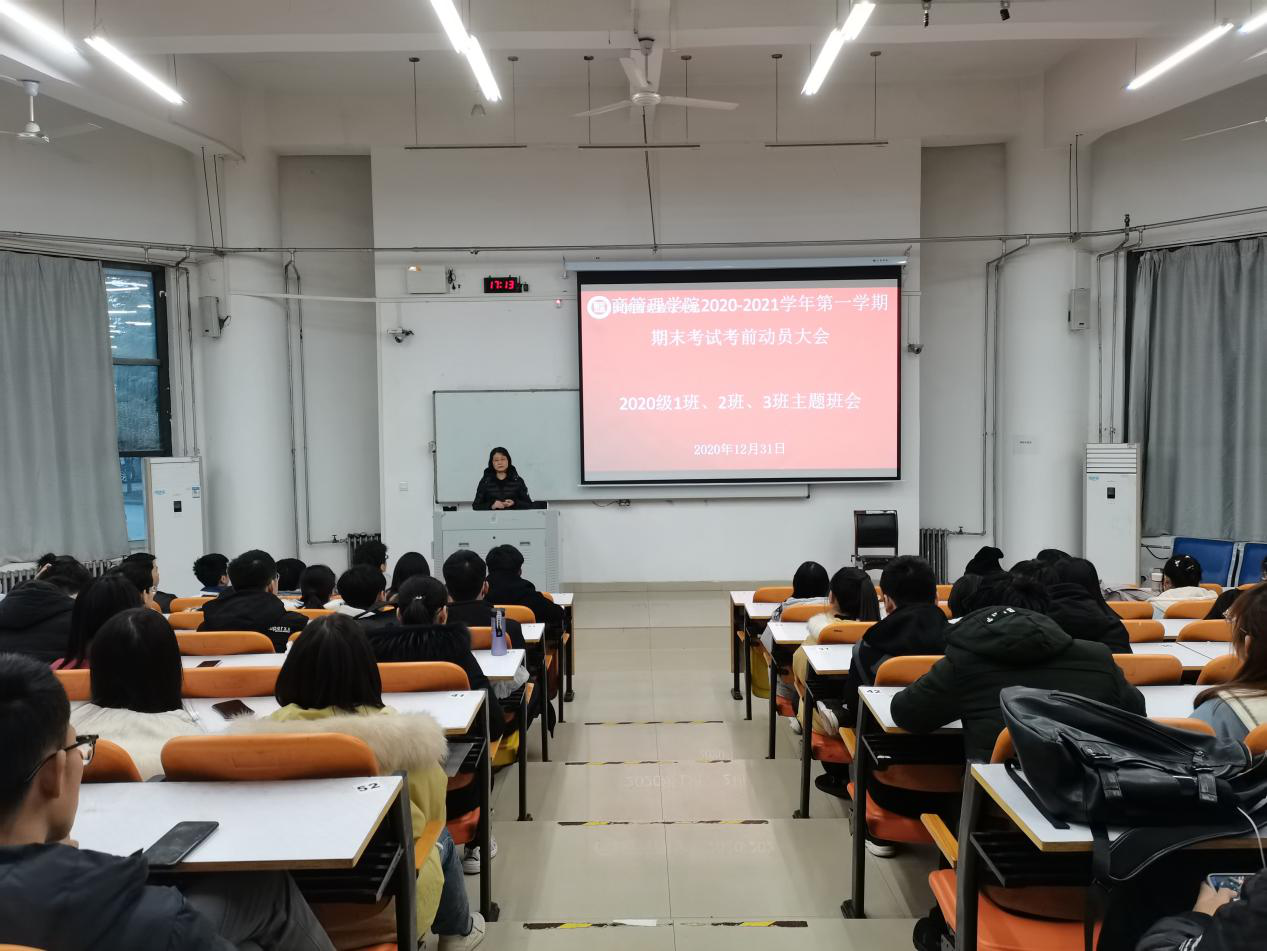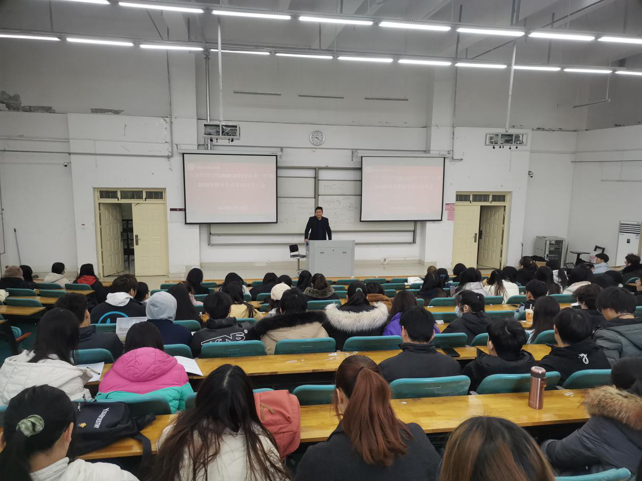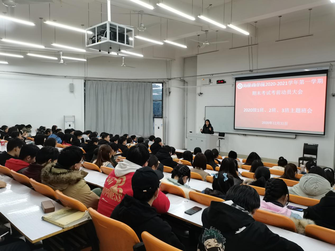 为进一步加强学风建设,端正考风、严肃考纪,营造严肃公平诚信的良好考试氛围,12月31日,我们在两个校区分别组织2018级、2019级和2020级全体学生,召开2020-2021学年第一学期期末考试考前动员大会。学院党委副书记赵辉、副院长王文超,团委书记赵绍春以及各年级辅导员深入会场做考前动员。