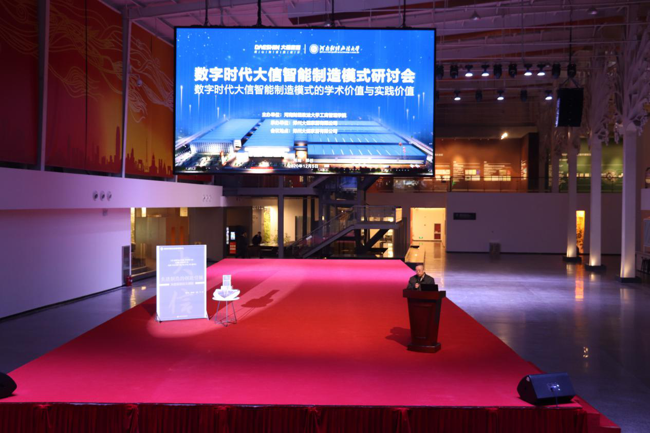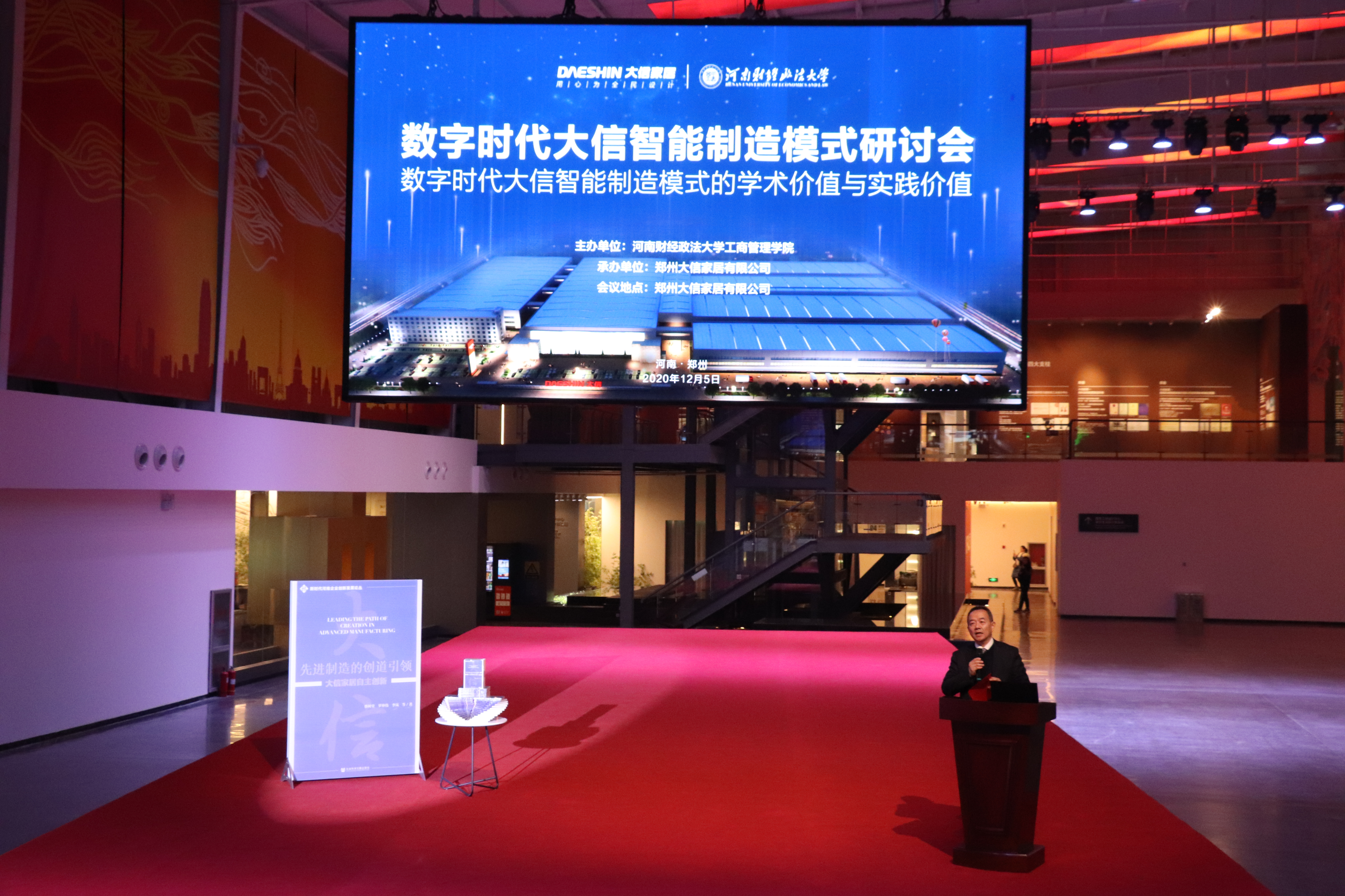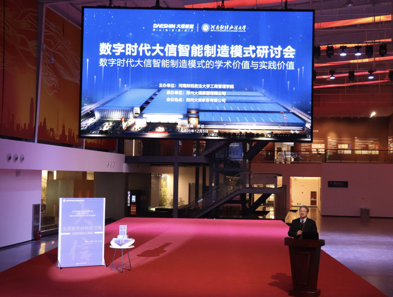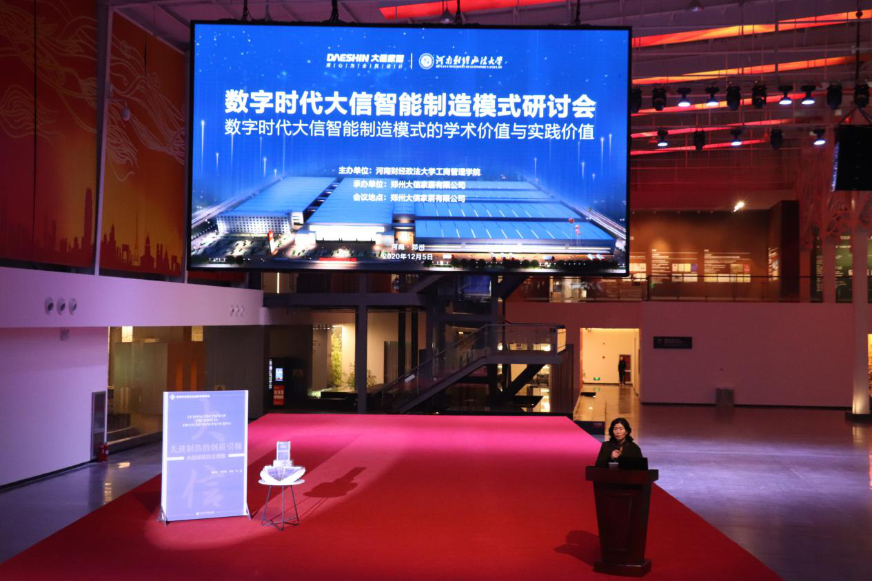 2020年12月5日下午,“数字时代大信家居智能制造模式研讨会暨《先进制造的创道引领——大信家居自主创新》新书发布会”在郑州大信家居有限公司隆重召开。我们副校长、工商管理学科协调人薛玉莲教授出席研讨会并致辞。会议由我们工商管理学科负责人、院长牛全保教授主持。出席会议的还有中国社会科学院数量经济与技术经济研究所副所长李海舰研究员、河南省工业和信息化厅副厅长杨新生和全国工商联家具装饰业商会秘书长张仁江。会议采取线下研讨、线上直播的方式进行。线下研讨参会人员有高校师生和企业家代表共100余人,通过线上各网络平台收看的参会人数达10万人。