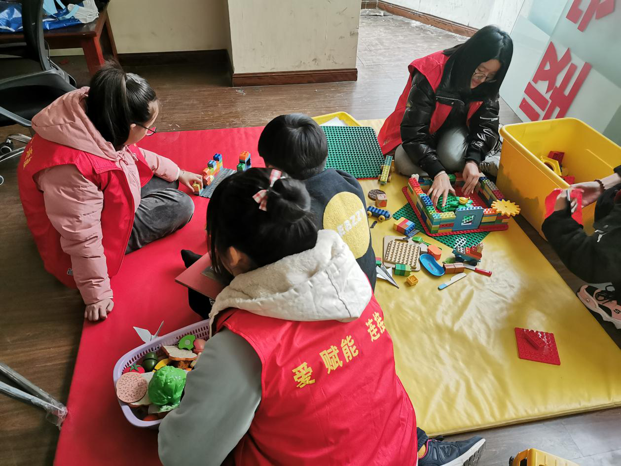 为了能给予自闭症儿童更好的帮助,志愿者们首先在皆福工作室学习了自闭症儿童陪护知识。在随后的活动中,志愿者与孩子们一起做游戏、拼积木,为孩子们唱儿歌和讲故事,工作室充满欢声笑语。志愿者们的努力,终于使一位孩子打开心扉,接受了志愿者的陪伴并亲吻了志愿者。最后,志愿者们与工作室老师共同回顾活动过程,分析孩子在游戏中的情绪表现,探讨出现情绪变化的原因,以便将来更好地做好志愿服务。他们认真负责的态度得到老师的赞许。