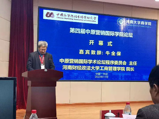 2020年11月21-22日,由中国高校市场学研究会主办,伟德国际1946bv官网发起、河南大学商学院承办的第四届(2020)中原营销国际学术论坛隆重举行。来自美国明尼苏达大学、佐治亚理工学院、南开大学、复旦大学、西安交通大学、伟德国际1946官方网、深圳大学、安徽财经大学、河南理工大学、南阳理工学院、信阳师范学院等10多所国内外高校共60余位专家学者参加了本论坛的线下会议,线上会议观看规模达到了4300余人次。