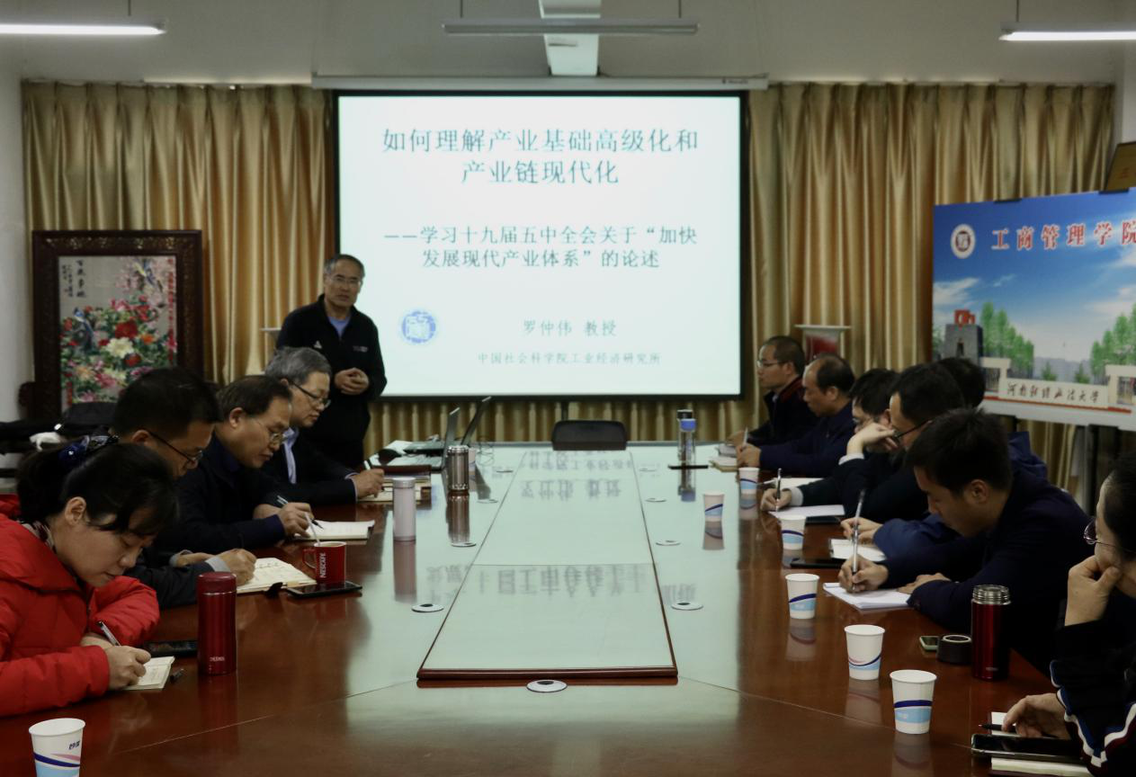 为深入学习贯彻党的十九届五中全会精神,促进工商管理学科建设,11月16日下午,伟德国际1946bv官网工会在教科楼B座771会议室举办学术沙龙,主题为:学习十九届五中全会关于“加快发展现代产业体系”的论述,由伟德国际1946bv官网特聘学科带头人中国社会科学院罗仲伟教授主讲。我们老师及学生30余人参加活动。