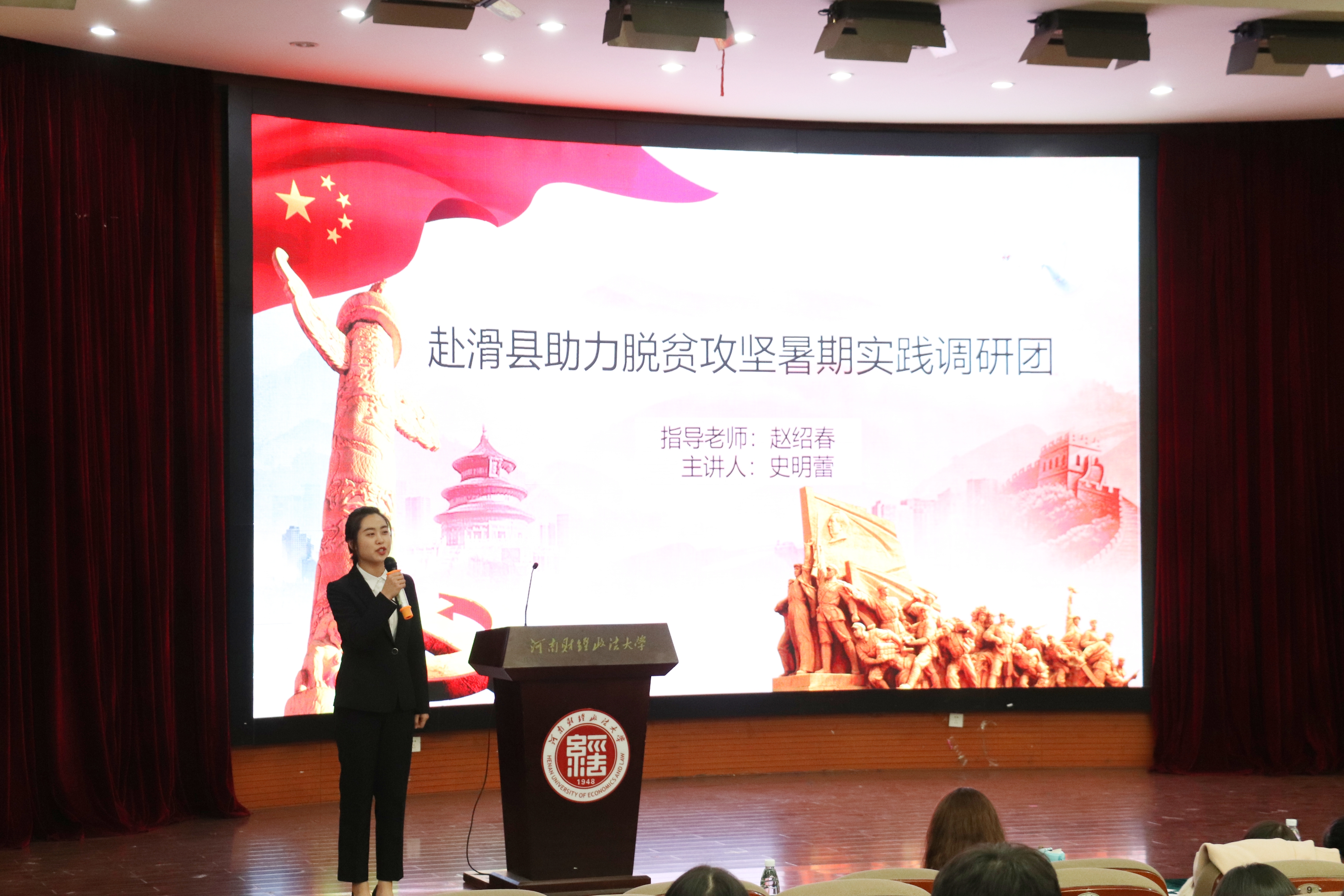 大赛伊始,学院团委副书记张喜增对我们暑期社会实践进行了总结。展示环节中, 9支队伍相继上台展示汇报实践过程与成果,与大家分享心得感悟,现场观众认真聆听,掌声不断。随后,团委副书记孙甜甜对此次大赛总结发言。她首先对本次暑期社会实践工作中各个团队的努力给予高度认可,赞扬各个团队真正在实践中做到了“受教育,作奉献,长才干”,鼓励有更多的同学能积极参与到2021年的暑期社会实践活动中,创新实践主题,发扬大学生的时代精神。最终,“豫见你”线上云支教暑期实践团以89分的好成绩荣获一等奖,赴濮阳“探索定点社区服务水平现状提高社区服务水平”暑期实践团、赴滑县留固镇路安村黑斑蛙养殖扶贫项目暑期实践团获得二等奖,河南省科技型中小微企业发展现状暑期实践调研团、赴河南焦作市温县赵堡镇陈家沟、湖南省衡阳市调研团新冠肺炎疫情对居民伦理消费的影响暑期实践调研团获得三等奖,赴滑县助力脱贫攻坚暑期实践团、“紧握数字化,助力企业行”暑期实践团、赴郑州市返家乡学术类暑期实践调研团获得优秀奖。