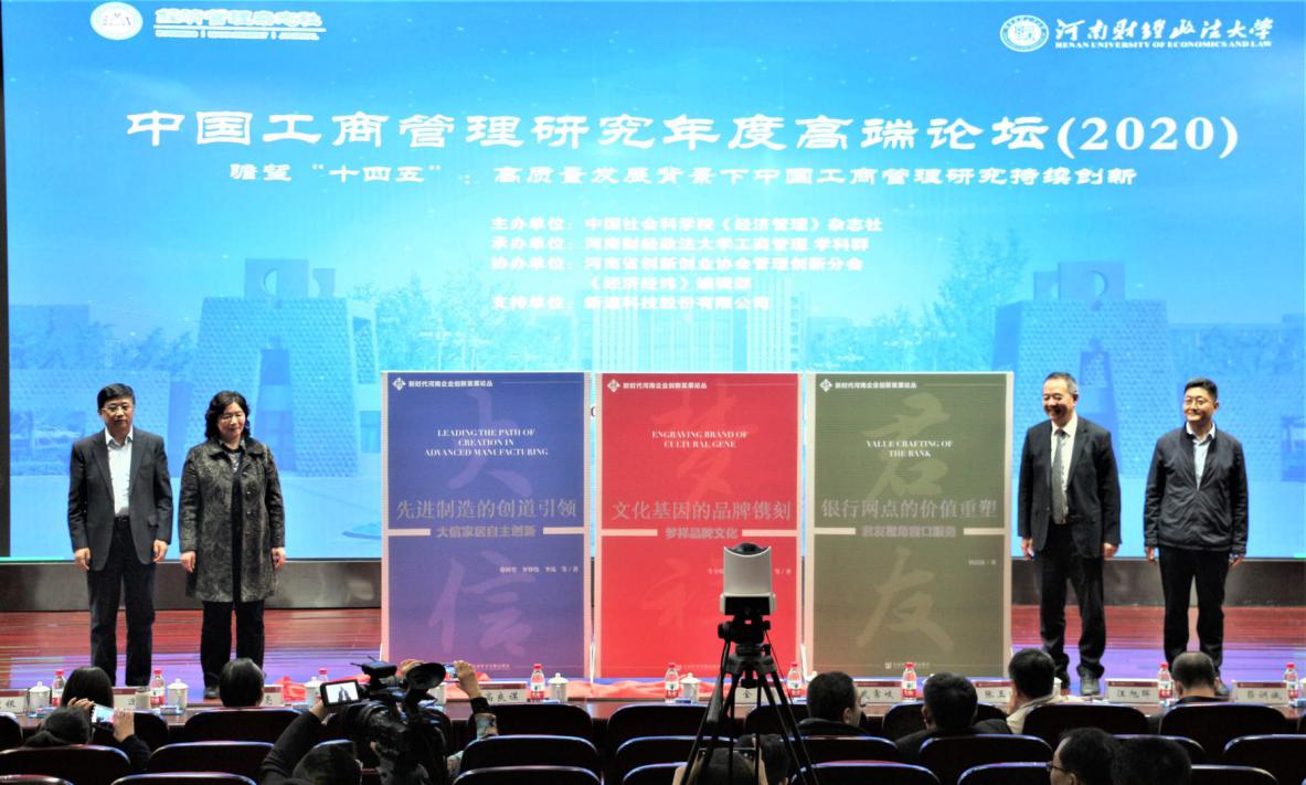 2020年10月25日上午,由伟德国际1946官方网工商管理学科规划出版的“新时代河南企业创新发展论丛”首批三本新书发布会在我们举行。本次发布会正值我们承办中国工商管理研究年度高端论坛(2020)期间,现场及线上三百余位来自全国各地的专家学者见证了这一活动。发布会展现了我们工商管理学科的最新研究成果,扩大了我们及我们工商管理学科在国内学术界的影响。