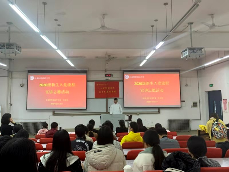 10月18日,我们学生党员志愿服务团分别在郑东校区、文北校区为2020级新生宣讲党的基本知识,介绍党员发展工作。