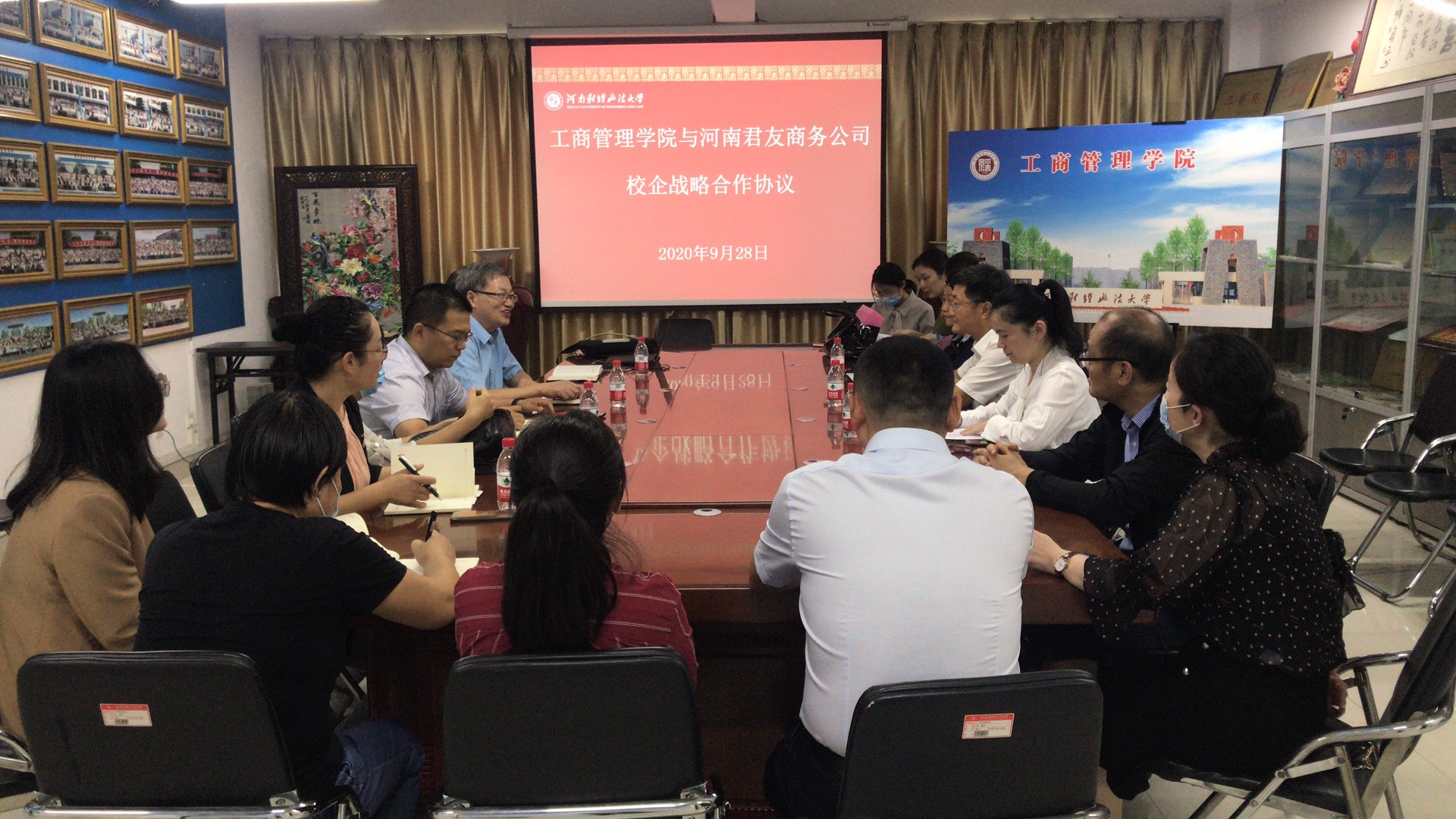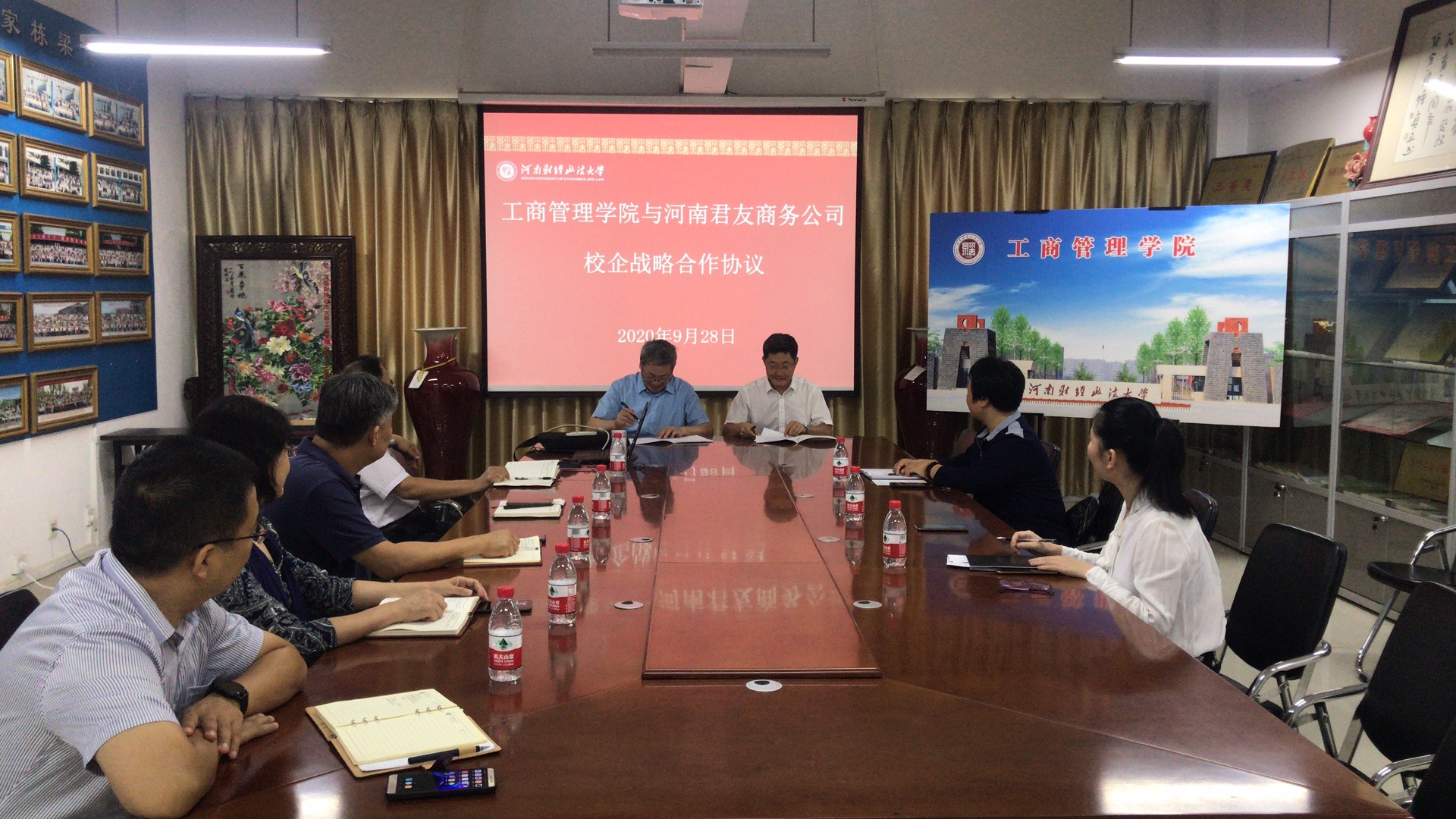 2020年9月28日下午,伟德国际1946bv官网与河南君友商务咨询有限公司(以下简称:君友咨询)在教学科研楼771会议室举行战略合作协议签约仪式,学院党委书记孙向东、院长牛全保、君友咨询董事长徐延军等双方相关人员参加了签约仪式。