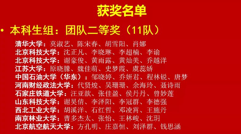 我们魏开宇、包帅博、赵亚冲和吴豫龙所在团队获得团队一等奖,代贤焌、吴珊珊、余海玲、聂诗雨所在团队获得团队二等奖;同时,魏开宇同学获得个人一等奖,代贤焌和赵亚冲同学获得个人二等奖,包帅博、郭金旭和吴豫龙同学获得个人三等奖。我们参赛团队荣获“卓越项目管理团队优秀奖”和“优秀组织奖”,许卫华、禹文钢和陶瑾老师荣获“优秀指导教师奖”荣誉称号。