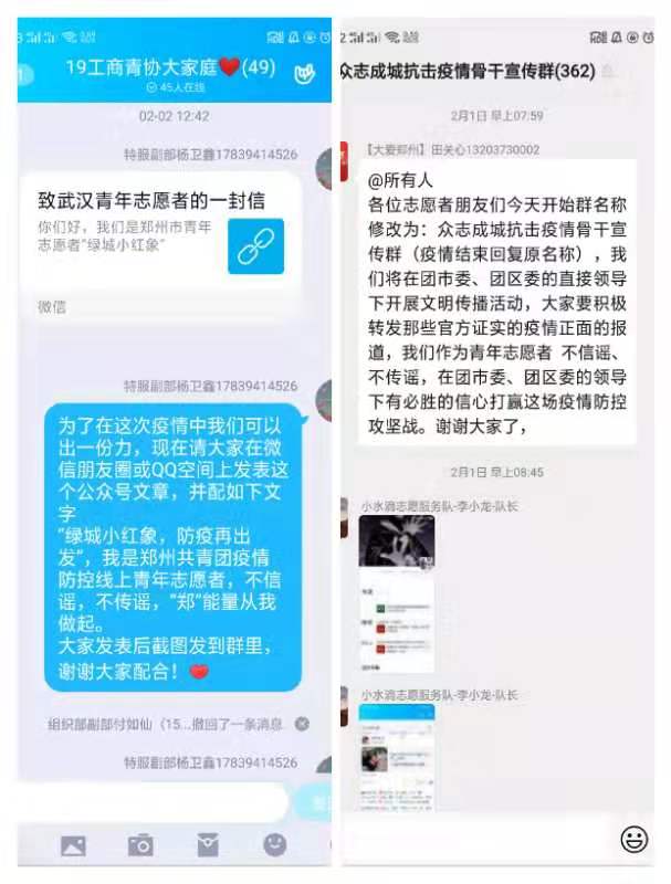 2018级杨卫鑫 杨卫鑫家住河南省周口市淮阳区,是一名共青团员。当她听说河南省大爱郑州志愿服务中心要在线上举办"众志成城抗击疫情"的活动时,她毫不犹豫的报名加入,积极动员本院学生每日线上转发有关疫情防御的新闻报道和宣传教育,让更多的人关注、了解疫情。在活动开始的前两小时,总转发量就突破了两万次。经过多天的坚持,她深深感受到此次活动对大家的帮助。很多同学表示,家人看到这些信息后,不仅自己对防疫更加重视了,还转发给其他人。杨卫鑫说:“作为一名志愿者,积极秉承志愿者精神是我的责任,更高兴的是我为疫情防控出了一份力。我相信在党中央的领导下,我们一定能战胜疫情。武汉加油,中国加油!”