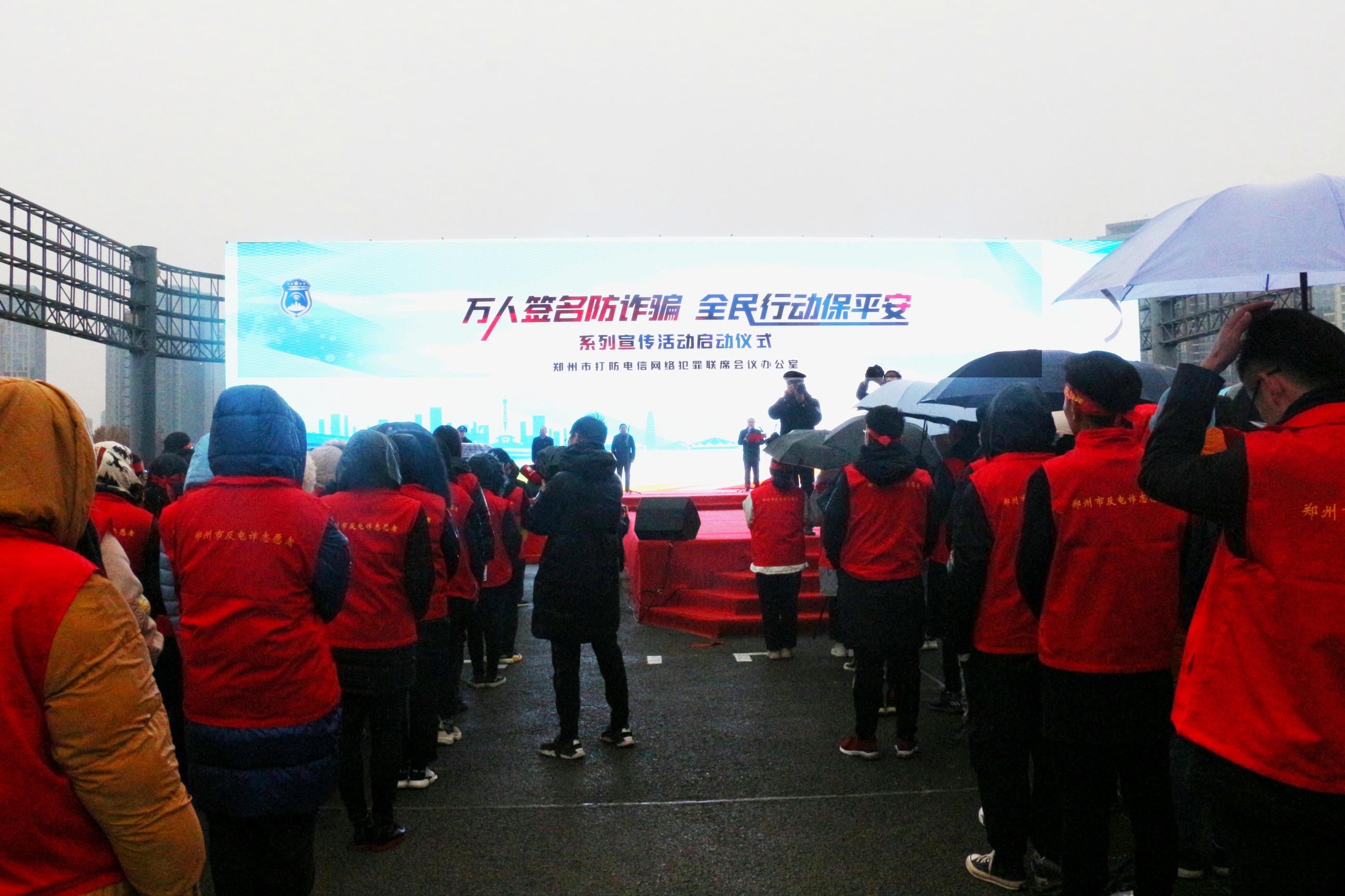 12月15日上午,我们100余名志愿者在郑东新区如意湖广场参加由郑州市政府组织的“万人签名防诈骗,全民行动保平安”系列宣传活动启动仪式。活动由团委书记赵绍春带队。