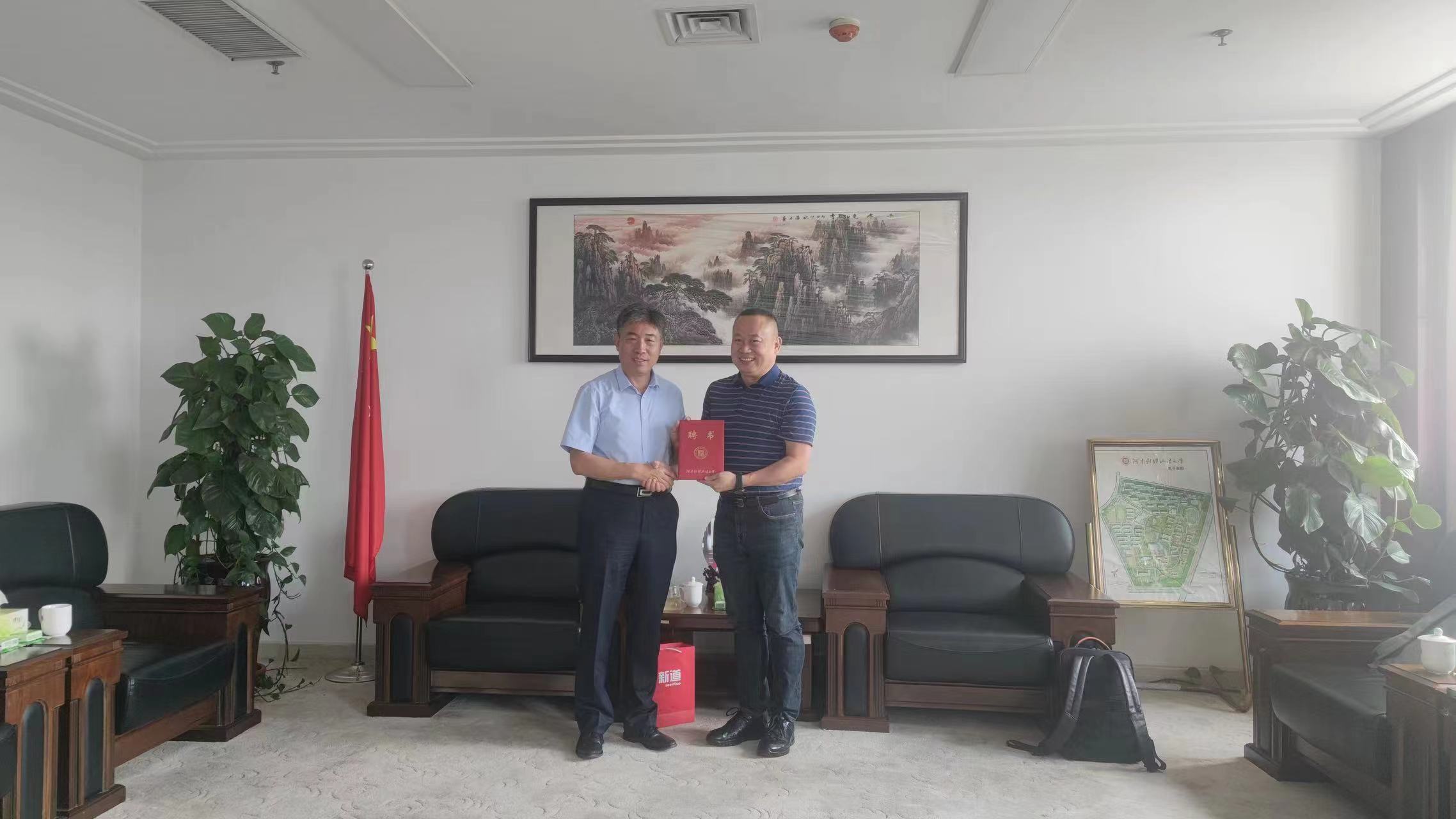 9月2日,新道科技股份有限公司河南分公司总经理张林峰一行来学院调研,党委书记赵辉,院长王永伟,名誉院长牛全保教授,以及教研室负责人参加调研会。会前,校长司林胜接见张林峰,并为张林峰颁发校外实践导师聘书。