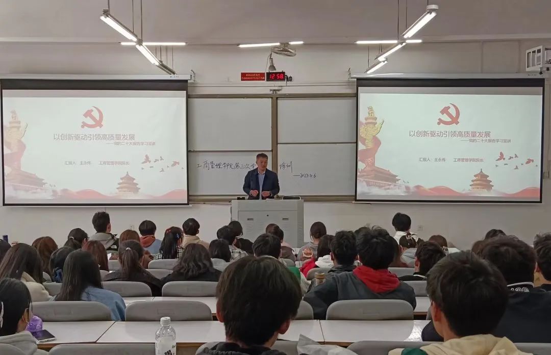此次培训的主题为“以创新驱动引领高质量发展”。王永伟从四个方面深入剖析了党的二十大报告中的创新引领战略,一是坚持创新驱动发展战略,提升自主创新能力;二是强化企业科技创新主体地位,激发企业创新活力;三是完善中国特色现代企业制度,弘扬企业家精神;四是聚焦高质量发展,构建中国特色哲学社会科学,创新发展新时代中国特色企业管理哲学。王永伟强调工商管理学科作为一门社会科学,应当高度重视其中所蕴含的哲学和价值观,他鼓励同学们加强专业学习,转变思维方式,进一步将理论知识转化为实践动力,更深层次地体会管理科学的实际意义。