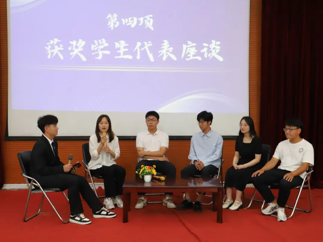 获奖学生接受现场采访。他们分享了自己在学业发展、学生干部锻炼、社会实践、体育运动以及考研等方面的经验、感受和收获。
