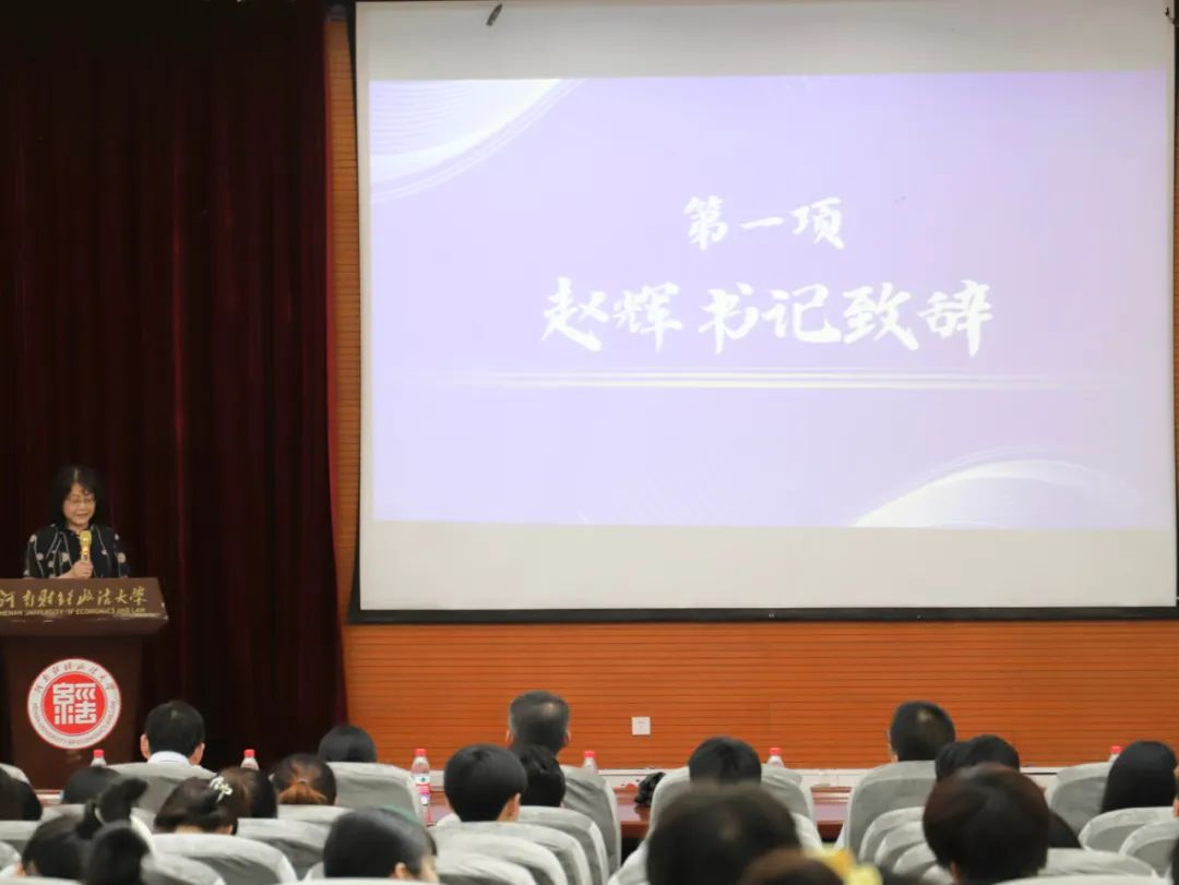 赵辉致辞。她充分肯定了我们在学风建设、社会实践、文体活动、学术竞赛等取得的成绩。她指出,“工商之星”的评选是我们坚持“五育并举”的重要举措,不仅是对同学们过去学习成绩和综合素质的肯定,也是对同学们未来的希冀和鼓励。她对同学们提出四点要求:一要有坚定的理想之魂。树立正确的世界观、人生观、价值观,把个人的理想信念融入党和国家的伟大事业中,做社会主义核心价值观的坚定践行者、中华民族伟大复兴中国梦的参与者,以理想之灯,照亮未来之路;二要有明确的目标定位。综合个人兴趣、爱好、特长等因素确立奋斗目标,找到自己的热爱,用热情和精力向最前沿迈进;三要有可行的成长之基。立足专业、行业,了解专业去向和行业前景,树立“行行可建功、处处能立业、劳动最光荣”的就业价值观,制定可行的学期计划、学年计划、学业规划、职业规划,不断向更高层次迈进;四要有踏实的奋斗之举。脚踏实地上好每节课,下得苦功夫,求得真学问,勤学苦练、精益求精、创新创造,让自己的奋斗之路更加坚实宽广。她希望全体同学茁壮成长,不断超越,不断进步,成为最优秀的自己!