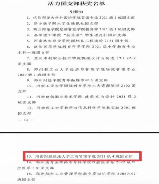 近日,由共青团河南省委举办的2023年度“活力杯”河南高校共青团基层基础工作大赛评选结果揭晓,我们210304班级荣获活力团支部称号。