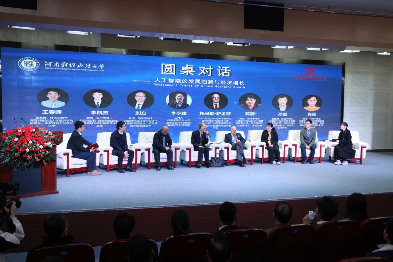 在圆桌对话环节,我们教师代表郭震、孙彪与萨金特教授围绕如何有效整合横断面数据和面板数据以构建复杂经济现象分析框架、中小企业在当今时代中的角色以及AI技术对其产生的影响等问题进行交流。萨金特教授强调,在快速发展的技术环境下,持续学习和适应才能应对日新月异的变化和发展所带来的未知问题。