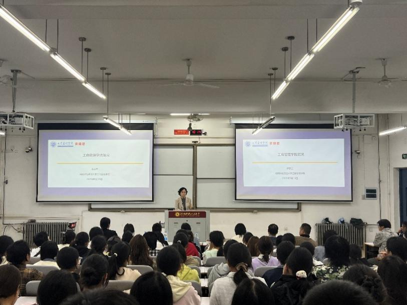 在专业认知环节,三位教研室主任分别对各专业进行了系统介绍。战略与数字领导力教研室主任田启涛、市场营销教研室主任王苗苗、人力资源管理教研室主任韩雪亮依次登台,围绕各专业的培养体系、师资力量、核心课程、未来发展前景及就业方向等方面进行了生动而详细的解读。这不仅加深了新生对所学专业的理解,也为他们未来的学业规划指明了方向。会议最后,院务主任张佳老师以“学习与角色转换”为主题,为新生们带来贴心分享。