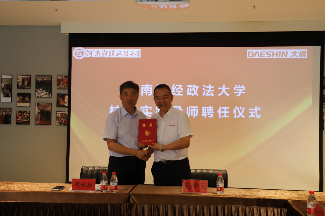 在校外实践导师聘任仪式上,司林胜对大信家居在我们实践教学、学生就业、教师科研、产教合作等方面的支持表示感谢,他说,郑州大信家居作为国家级工业设计中心、国家专精特新“小巨人”企业、“设计河南”的践行者和引领者,是我们重要的省级实践教学基地。期望大信继续参与学校教育教学改革和人才培养环节,推进产学研用深度融合。尤其在“十大战略”“设计河南”背景下共建“设计学院”、持续参与专业竞赛、提升管理创新水平等方面进一步深入合作。随后,司林胜向大信家居董事长庞学元颁发了校外实践导师证书。