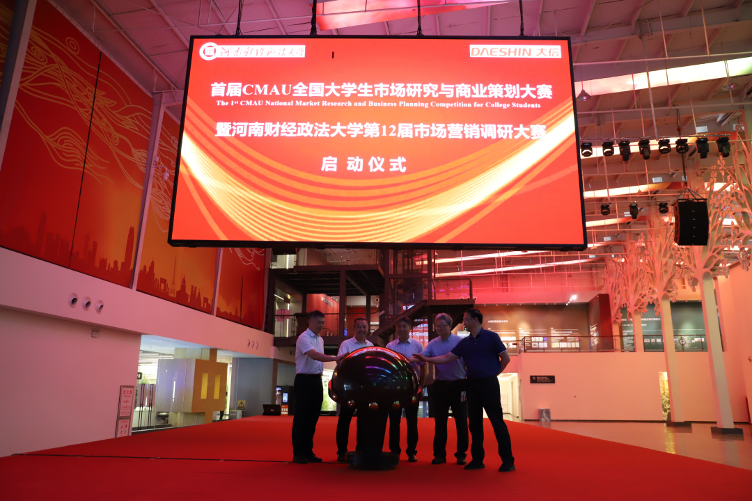 在公司大厅,司林胜、庞学元共同启动了首届CMAU全国大学生市场研究与商业策划大赛校赛暨伟德国际1946官方网第12届市场营销调研大赛。