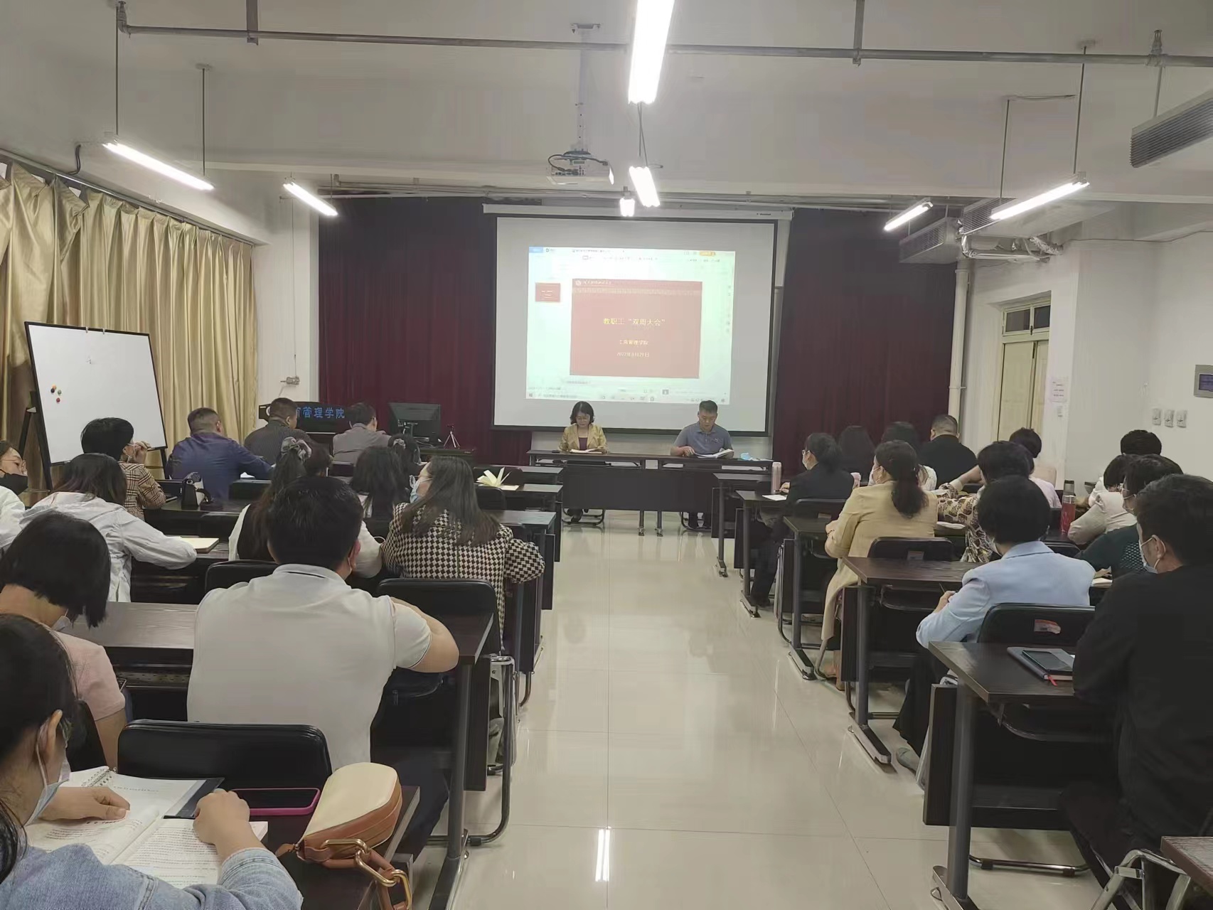 副院长王文超通报申报博士授权点和学术科研建设情况,他对线上青年学者论坛,2022年国家级、省部级课题申报工作,以及获得4项省部级项目立项的情况进行总结,鼓励教职工积极落实横向课题项目。