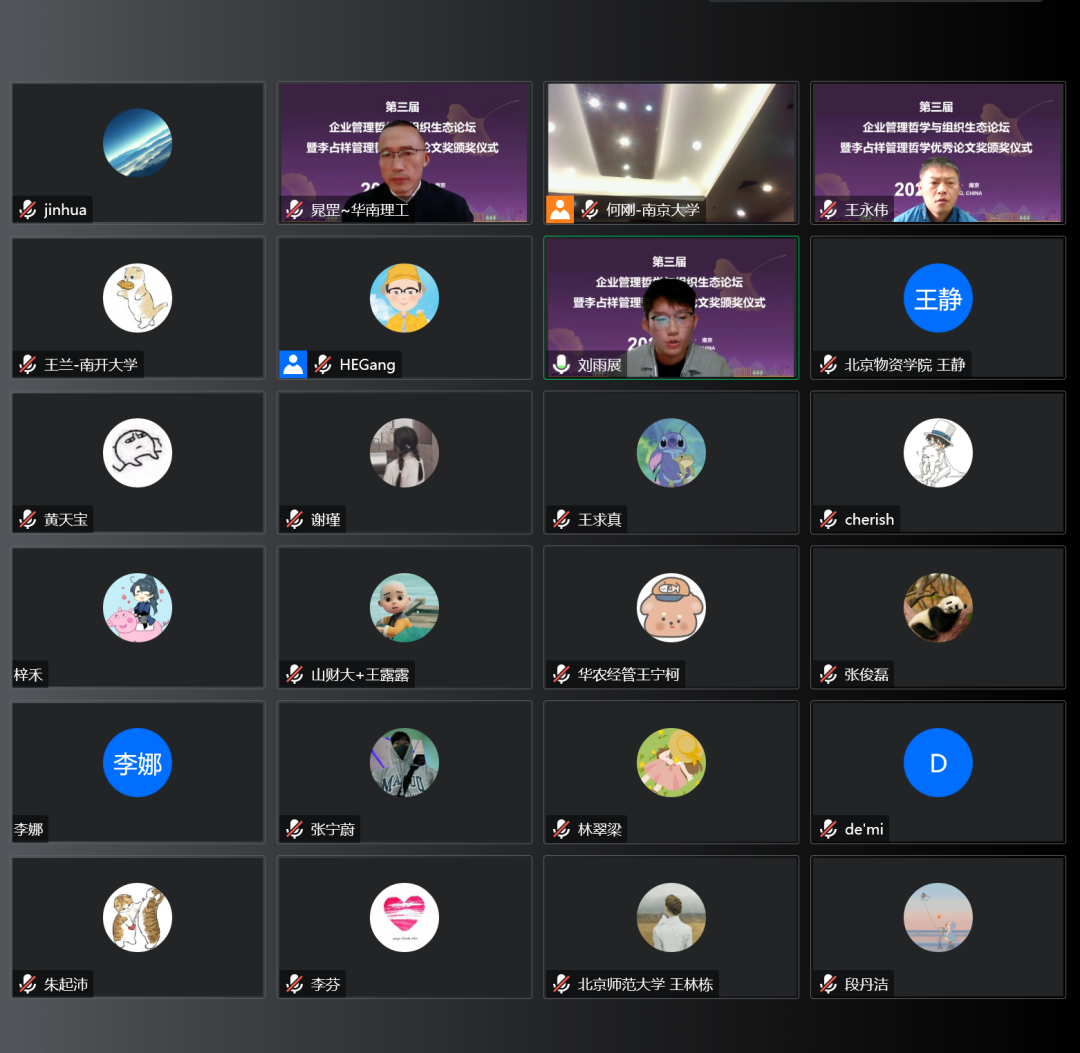 2022年11月5日至6日,由中国人民大学商学院、南京大学管理学院、中国企业管理研究会战略管理专业委员会主办,南京大学管理学院、中国人民大学企业管理哲学与组织生态研究中心承办的第三届企业管理哲学与组织生态论坛暨“李占祥管理哲学优秀论文奖”颁奖仪式(2022)年会在线上顺利召开。院长王永伟作为点评嘉宾出席,我们科研团队研究成果入选并在分论坛进行报告。